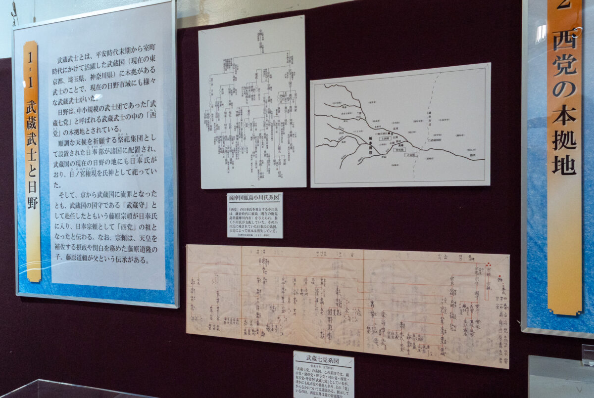 今回の企画展では、平山季重をはじめとする日野に関する武蔵武士について日野市内にある関連の文化財や発掘成果などが紹介されています。