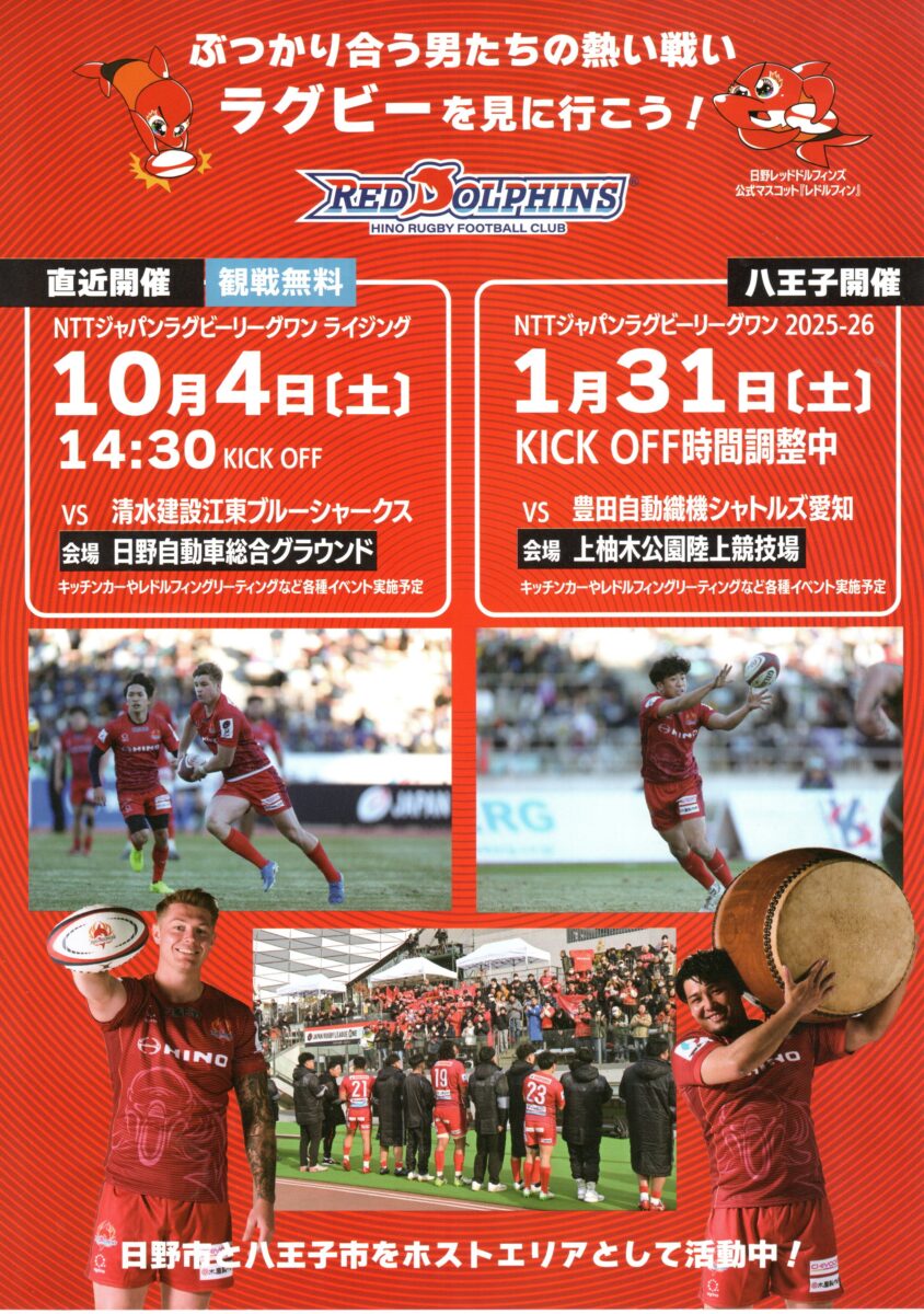 10月4日(土)、日野自動車総合グラウンドで、ジャパンラグビーリーグワンライジング2025、日野レッドドルフィンズvs 清水建設江東ブルーシャークス戦の試合が行われます。 この試合は観戦無料、間近で迫力あるラグビーを体感 […]
