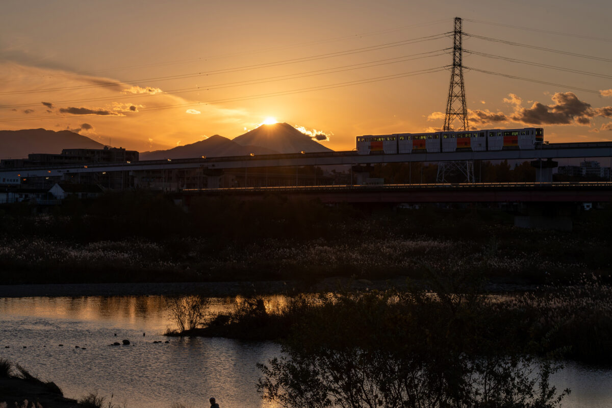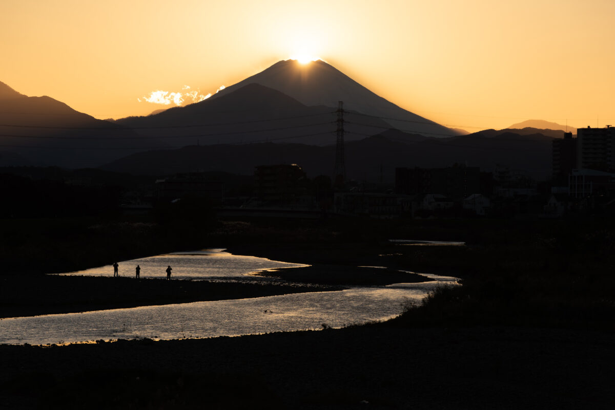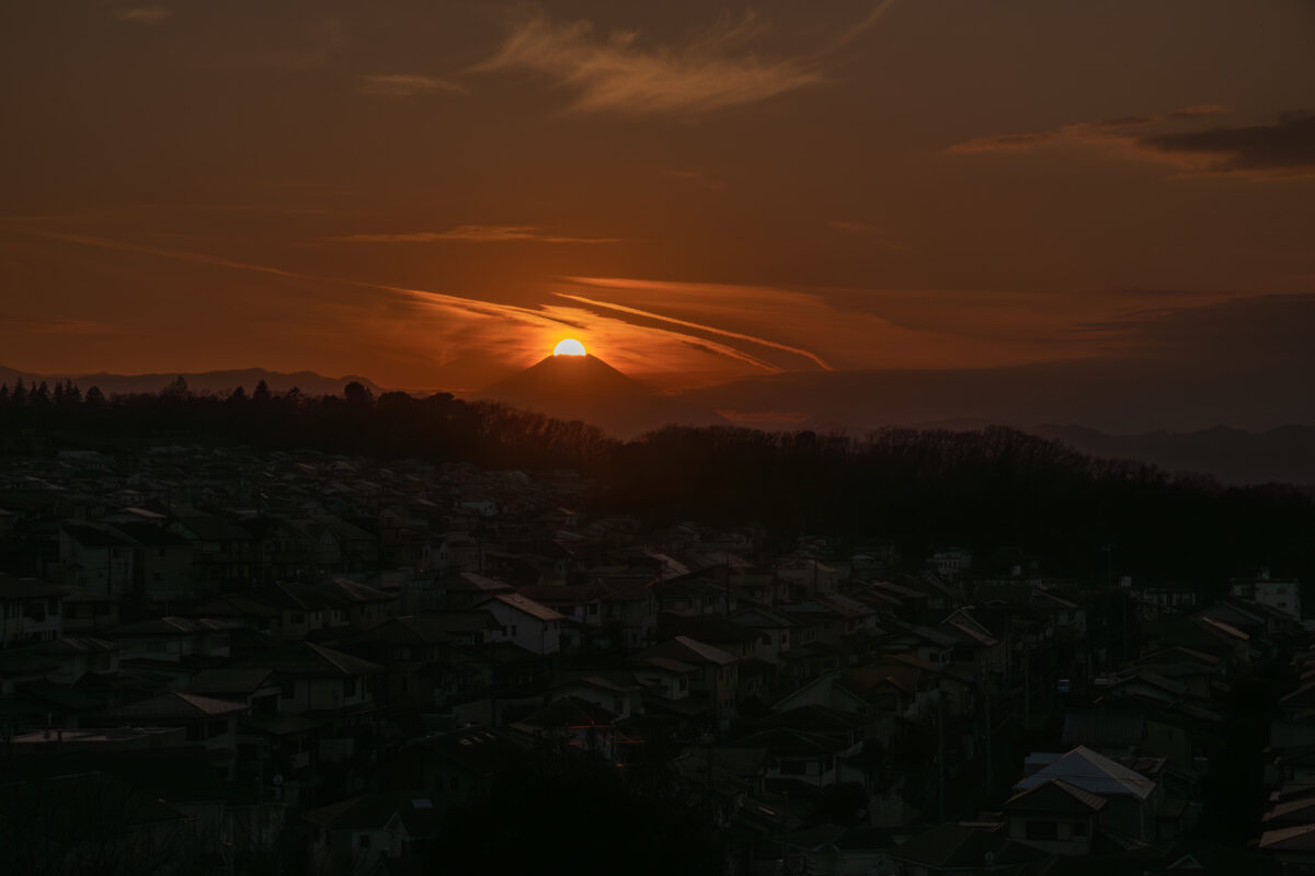 晩秋から初冬、年をまたいで2ヶ月間、日野市では太陽が富士山をめがけて沈む「ダイヤモンド富士」の季節です。