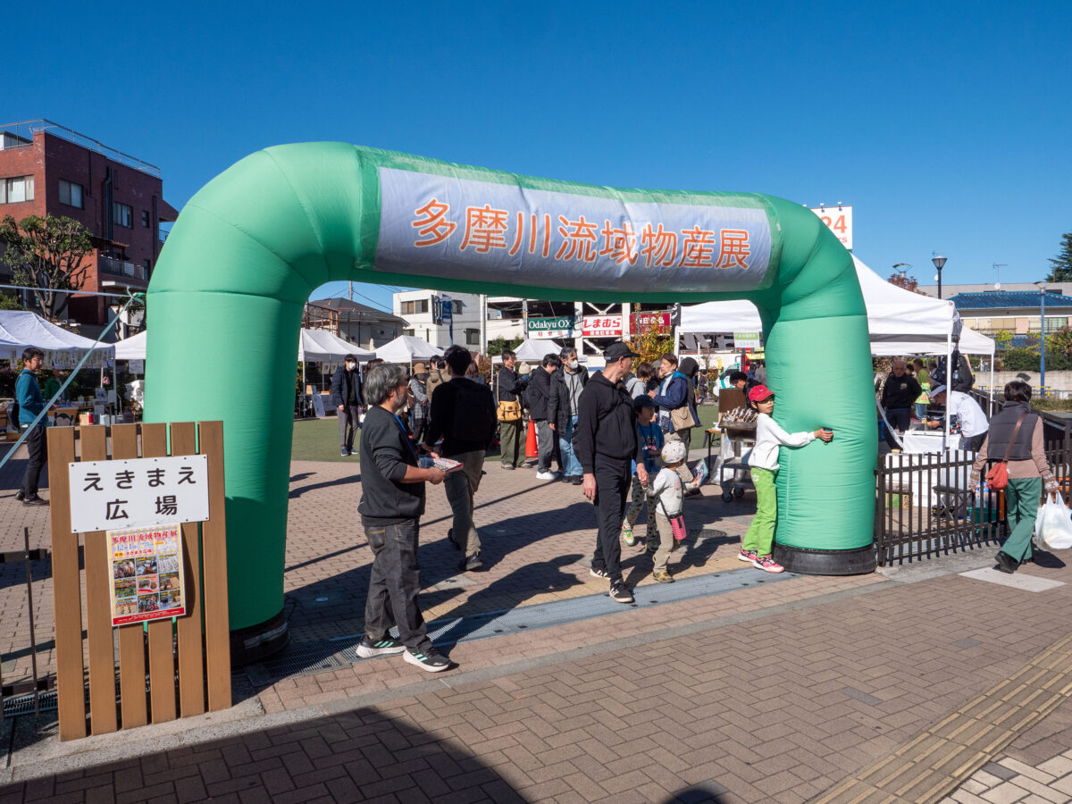 多摩川流域郷土芸能フェスティバル会場の「エコルマホール」向かいの狛江駅前ほこみちエリアでは、参加自治体による物産展が行われます。