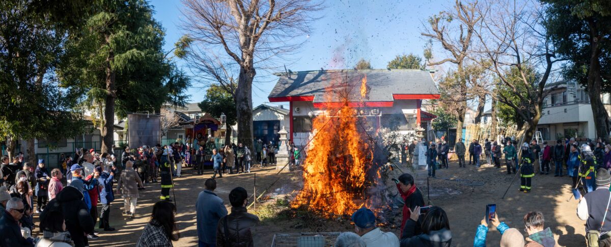 毎年、小正月の時期になると、日野市内の各所で行われるのが、「どんど焼き」。