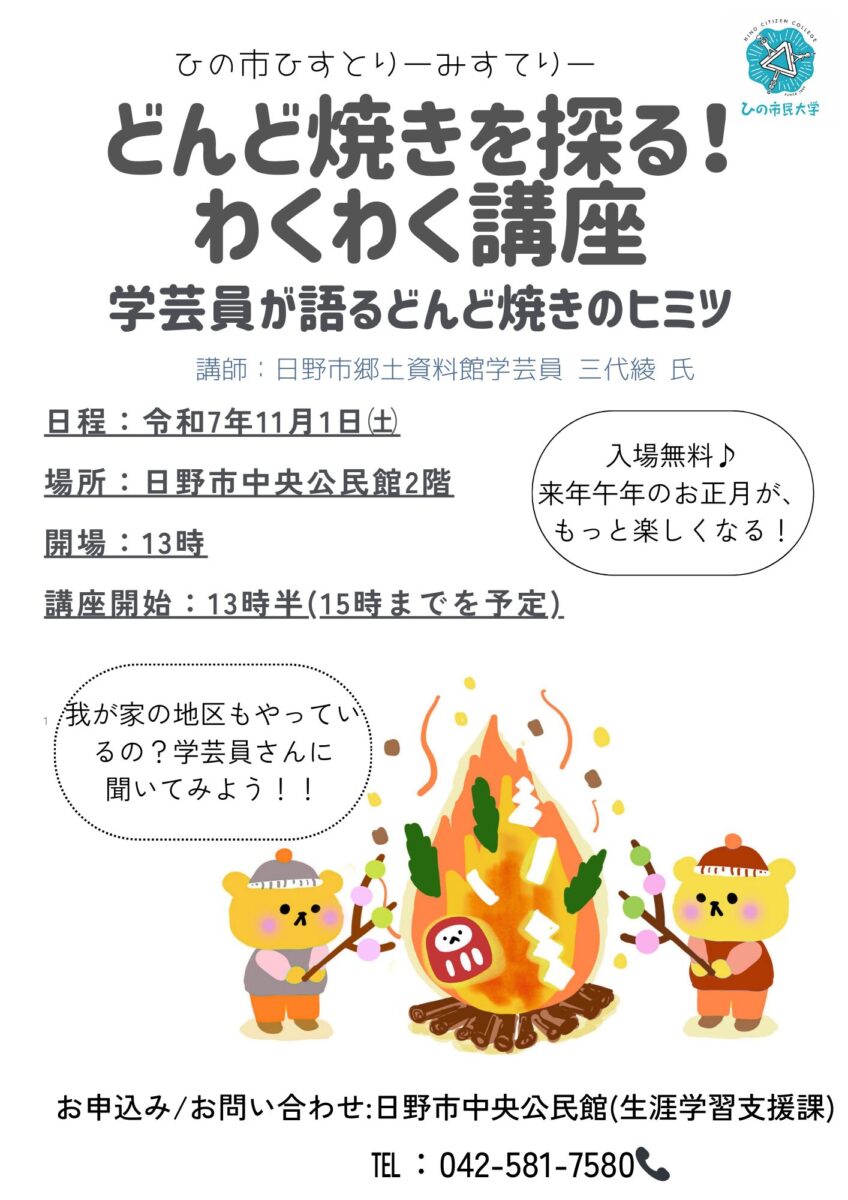 そんな日野市内での「どんど焼き」の現状について、日野市学芸員がどんど焼きのヒミツを語る講座が開催されます。