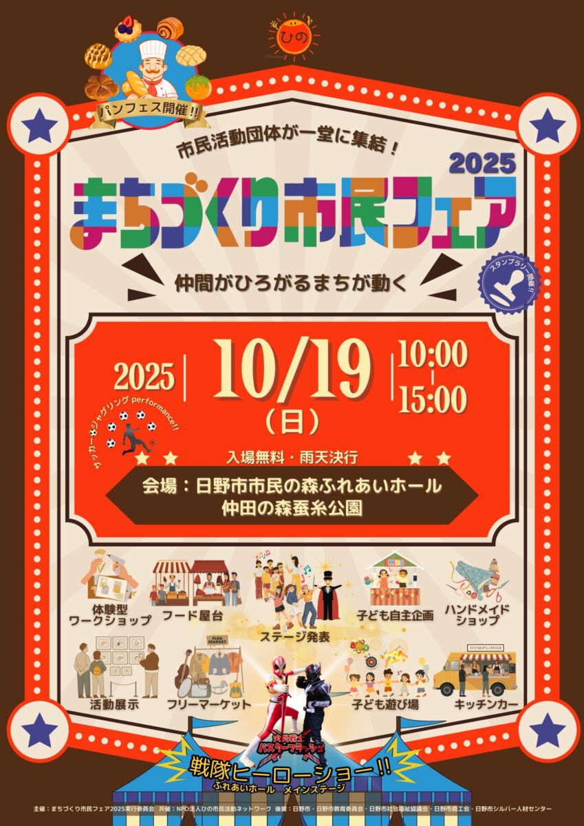 問合せ | まちづくり市民フェア2025実行委員会事務局(ひの市民活動支援センター内) 042-581-6144(受付時間:9:00~17:00) |