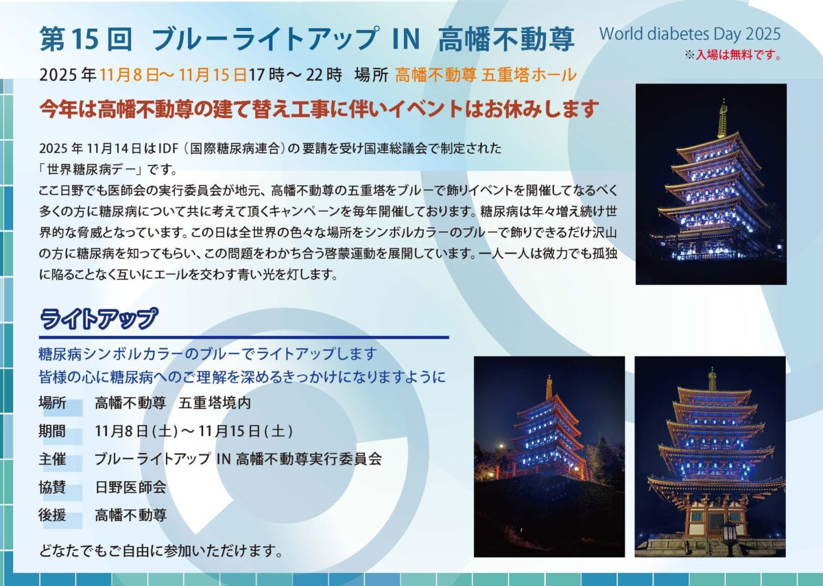 ブルーライトアッ世界糖尿病デー「第15回ブルーライトアップIN 高幡不動尊」開催