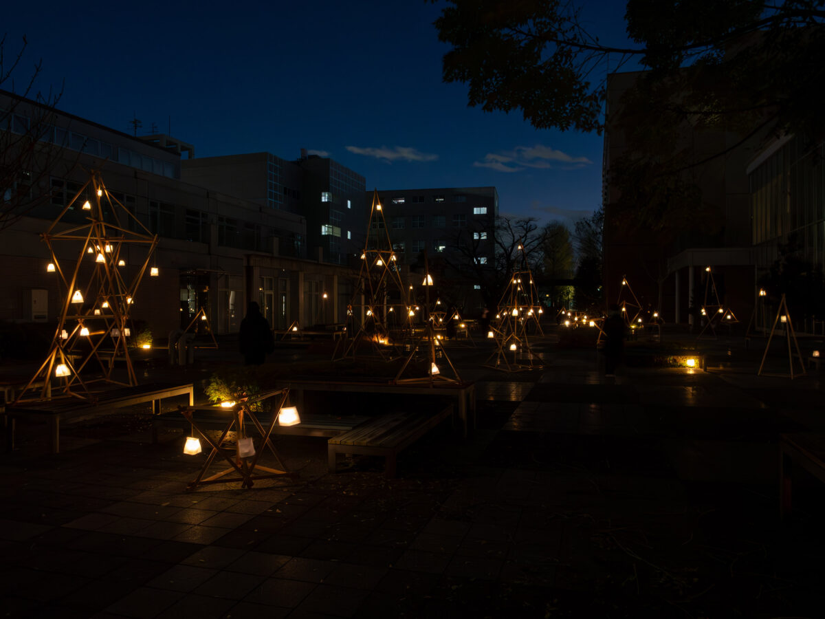 今年も「建築デザイン」や「まちづくり」の知識を活かして作り上げたアイデアでキャンパス内を照らする光のインスタレーション「光の庭~暮れ~」が灯ます。