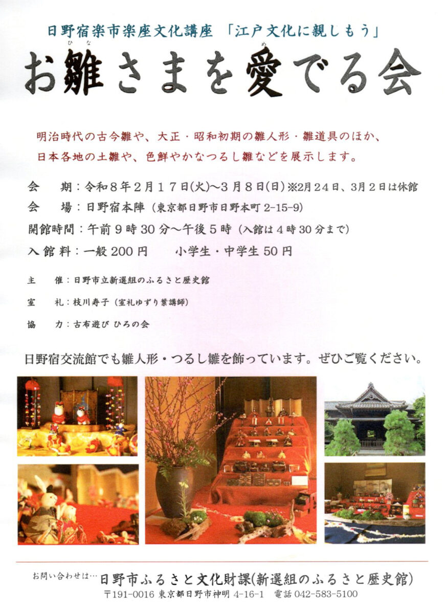 | 問い合せ | 日野市新選組のふるさと歴史館 TEL:042-583-5100 |