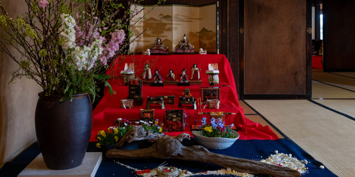 | 室 礼 | 枝川寿子氏(室礼ゆずり葉講師) 協 力・古布遊び ひろの会 ※京王百草園「梅まつり」会場でも、枝川寿子氏(室礼ゆずり葉)の飾り付けによる「ひなまつり 雛人形つるし雛展」が行われます。 合わせてごお出かけください |
