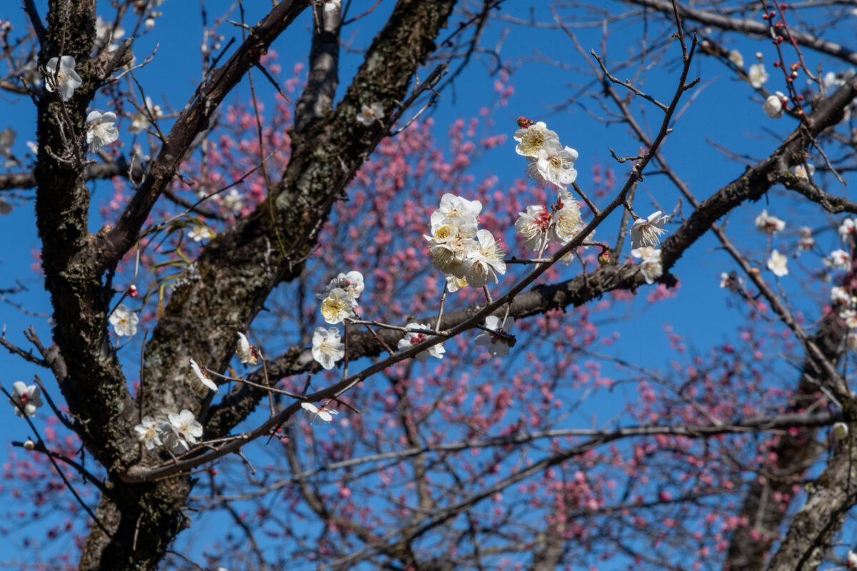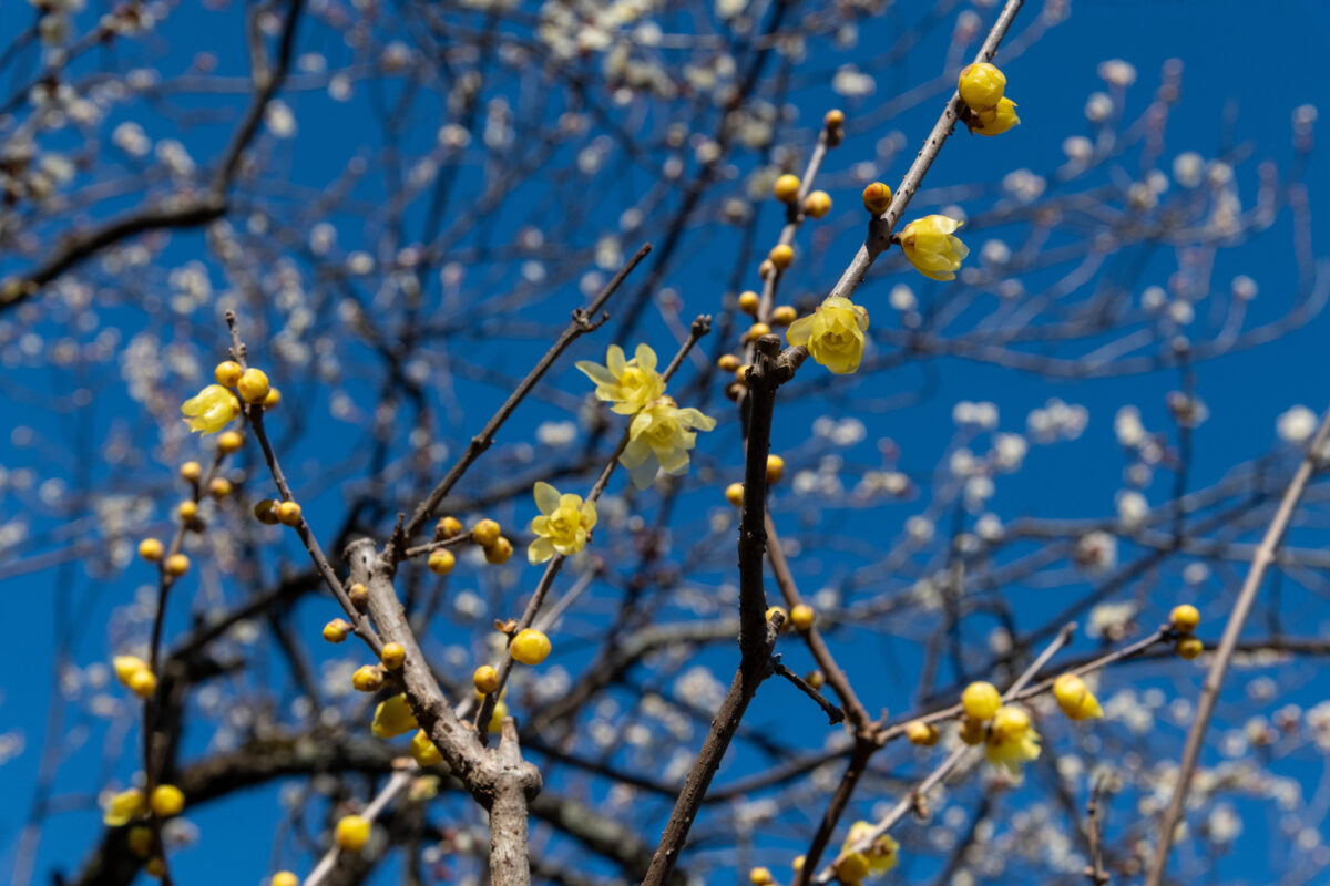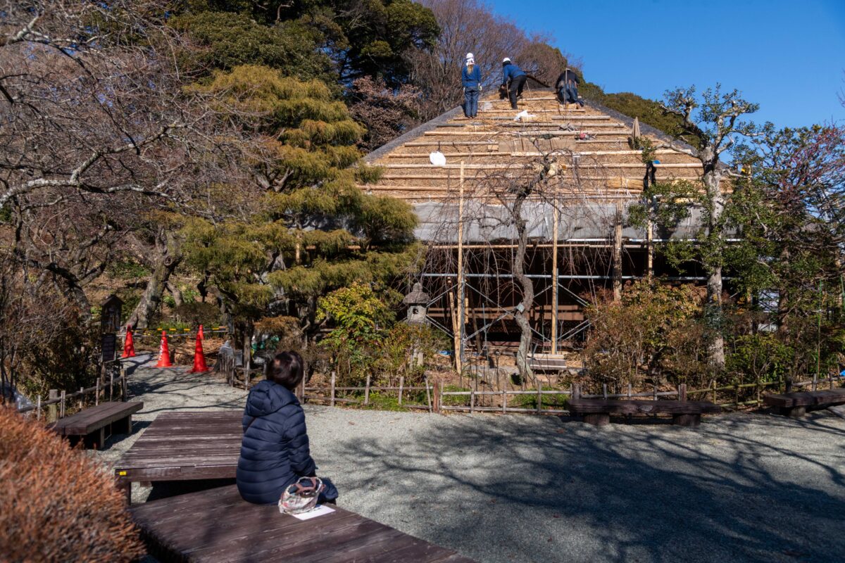 春待つ間に 2026/01/19 最終更新日時 : 2026/01/19 日野市観光協会 小正月も過ぎ、日野市内各地で行われた「どんど焼き」も無事に今年の分は終了。 日の入りも冬至の頃に比べて、目に見えて遅くなっています。 見晴台からは東京スカイツリーも。逆方向を見ると富士山が 園内の蝋梅は見頃です この時期、フット蝋梅の香りに思い出されるのは、京王百草園。 2月になると、山の日本庭園は梅に包まれ、恒例「梅まつり」が始まります。 といっても、1月の中旬ともなると、すでに早咲きの梅は花を開き始めています。 明治時代から百草園にある、松蓮庵では正月明けから茅葺屋根の葺き替え工事の真っ最中。一昨年から、順に3年間かけて行われている作業もことが最終年ということで、今月末、丁度、高幡不動尊で初不動の縁日が行われる頃には、終了となるとのことです。 それまで、園内の見晴らし台から望めば、奥に都心のビル群に、咲そろい始めた梅と進む工事の様子をご覧になれます。 今回は南北両面の葺き替え工事です 日本水仙も咲き始めました