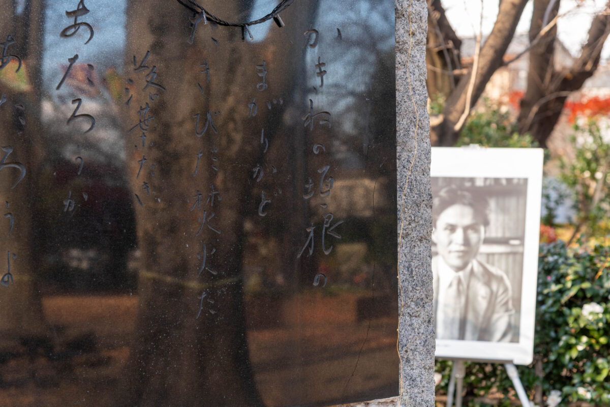 作詞者の巽聖歌は日野の旭が丘で後半生を過ごし、このことを後世に伝える「たきびの歌詞の碑」が旭が丘中央公園に建てられています。