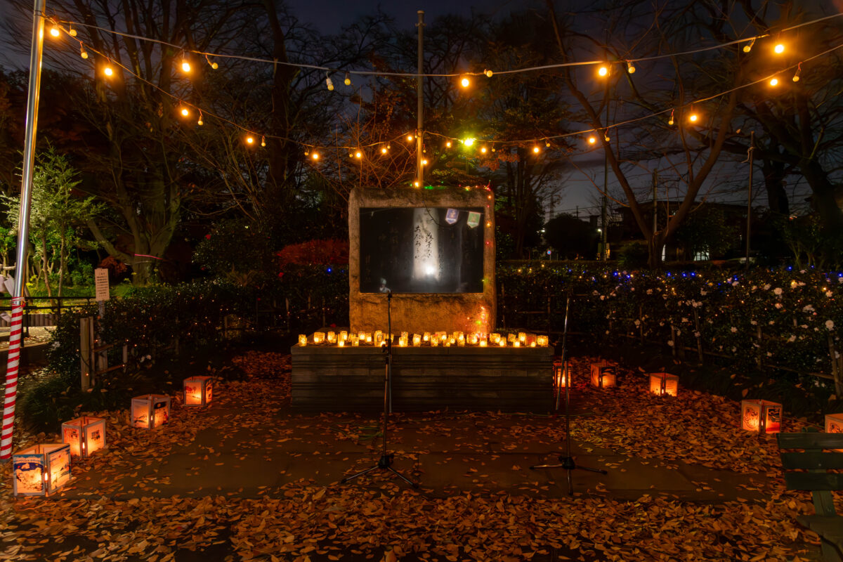 | 第3部 詩碑の前でキャンドルサービス | 詩碑の前でキャンドルサービス ※旭が丘小学校製作のたきび灯ろう42個展示 |