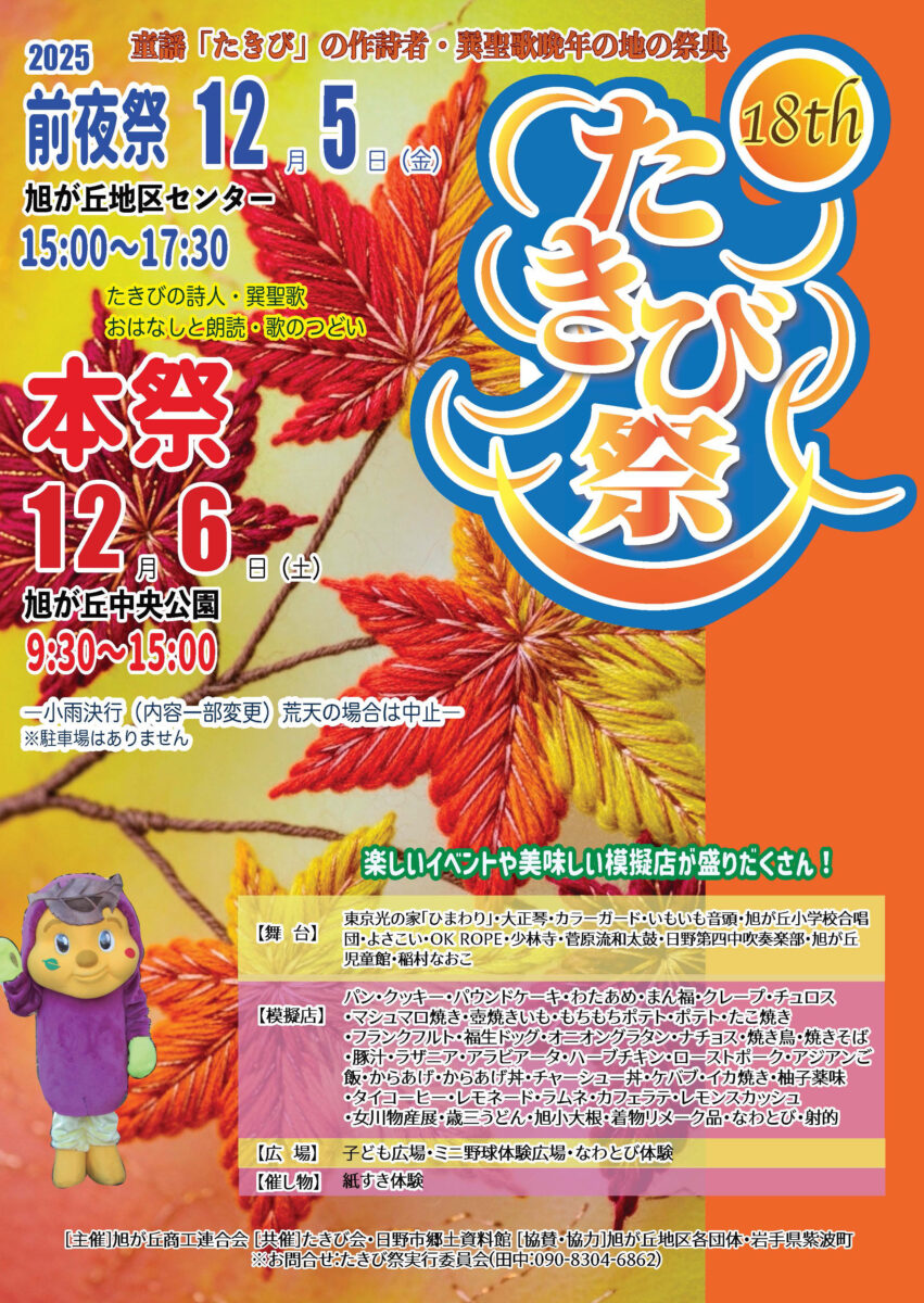 この巽聖歌をしのび、毎年開かれてきた「たきび祭」が12月6日(土)に開催、今年で18回目となります。